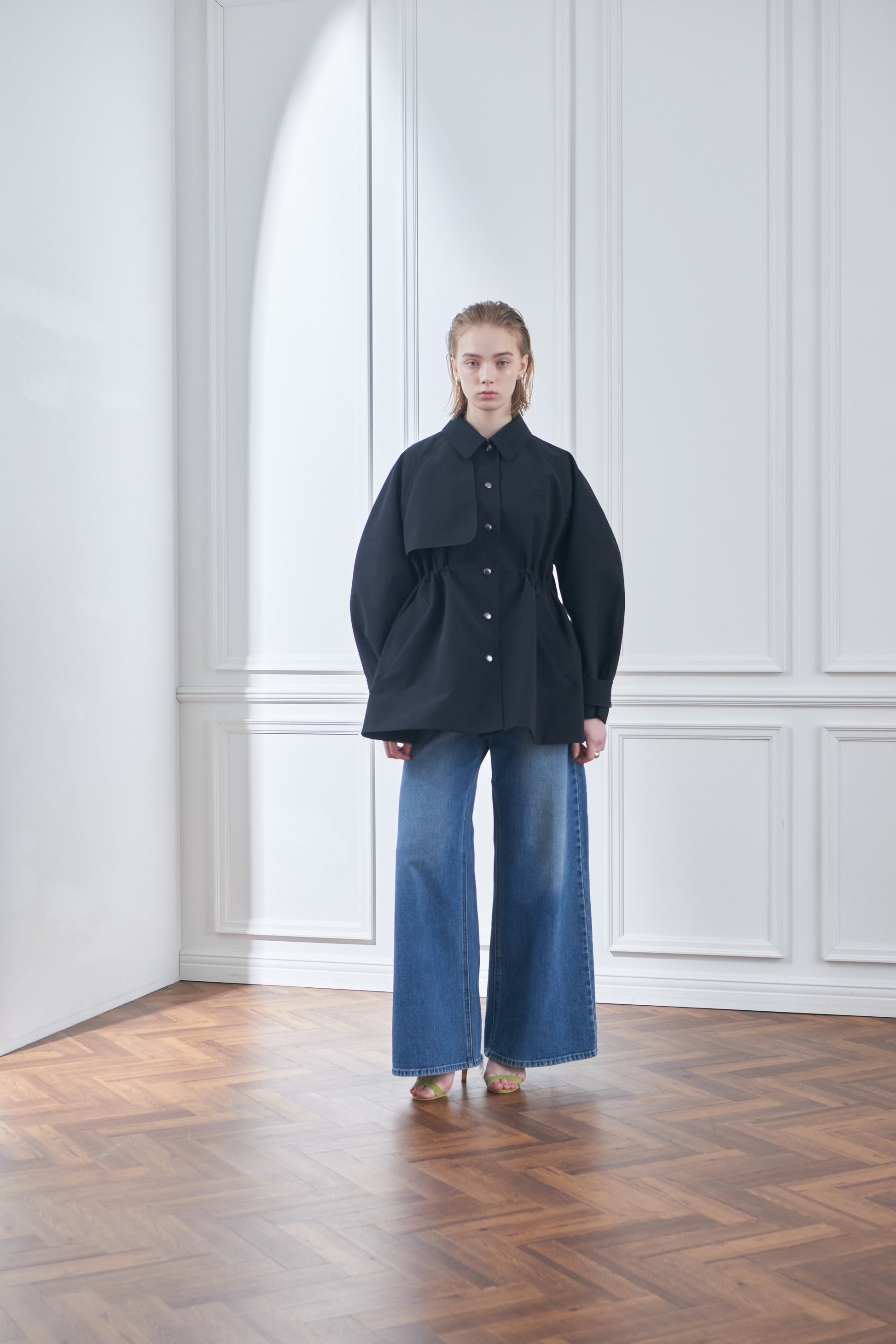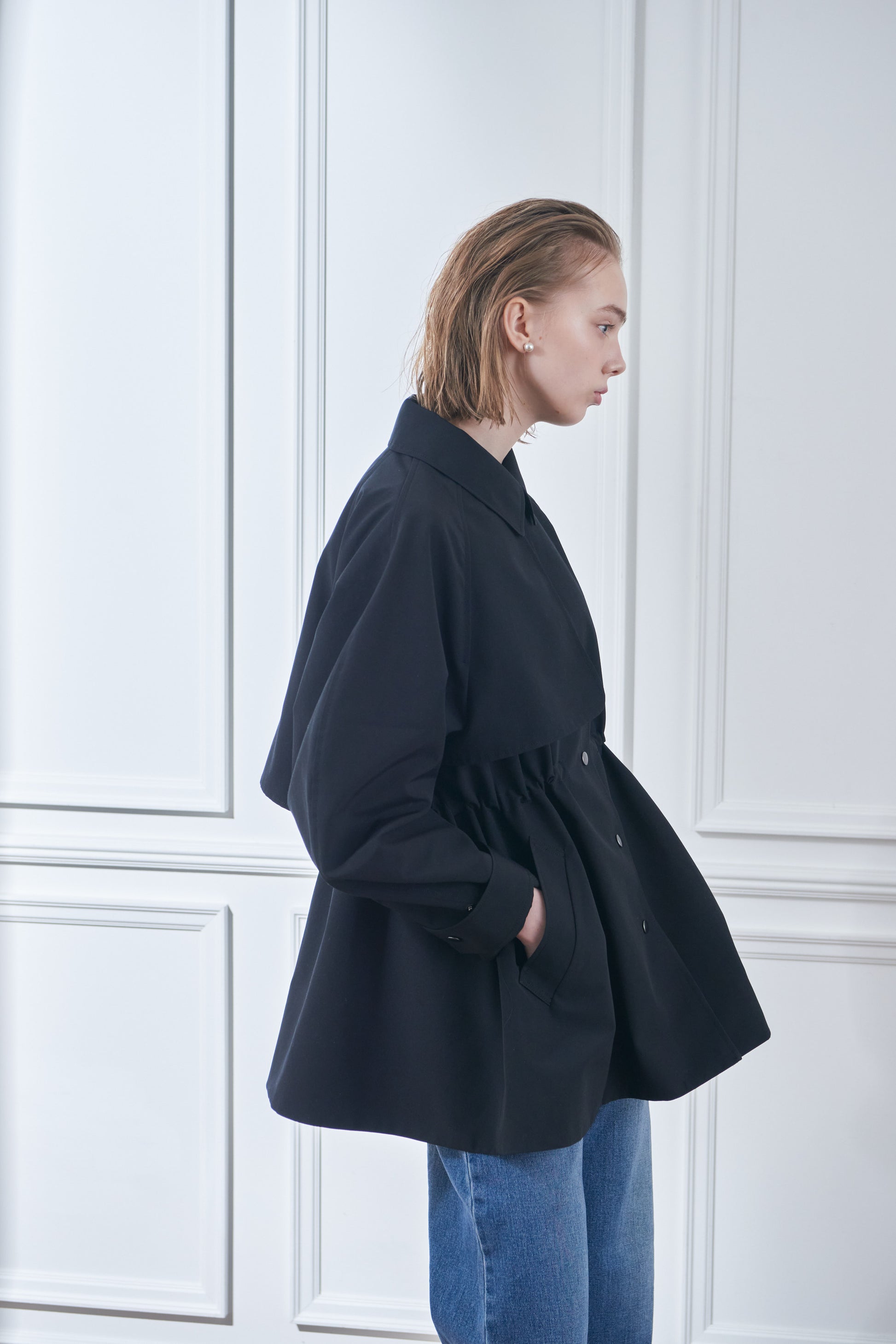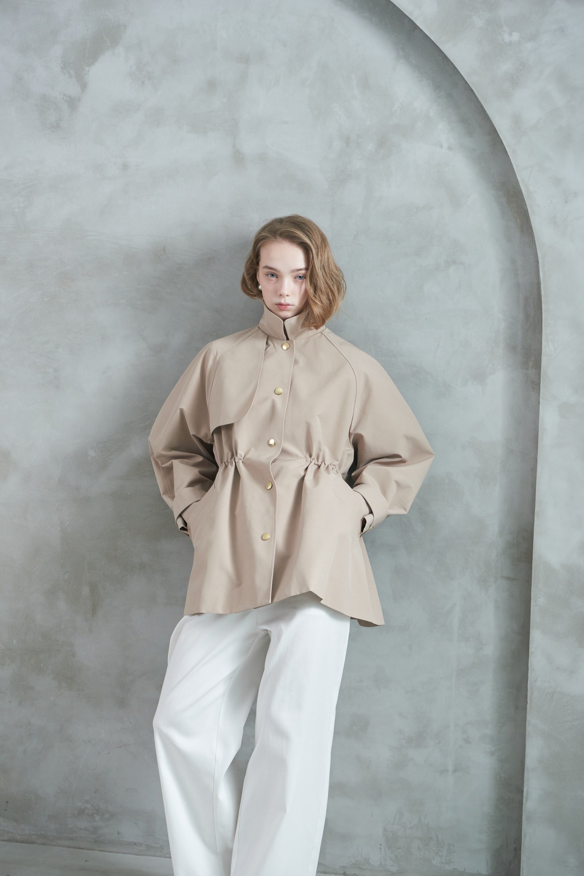 立体的なテントシルエットに、ウエストを絞ることで生まれる女性らしいフレアラインが魅力の一着。