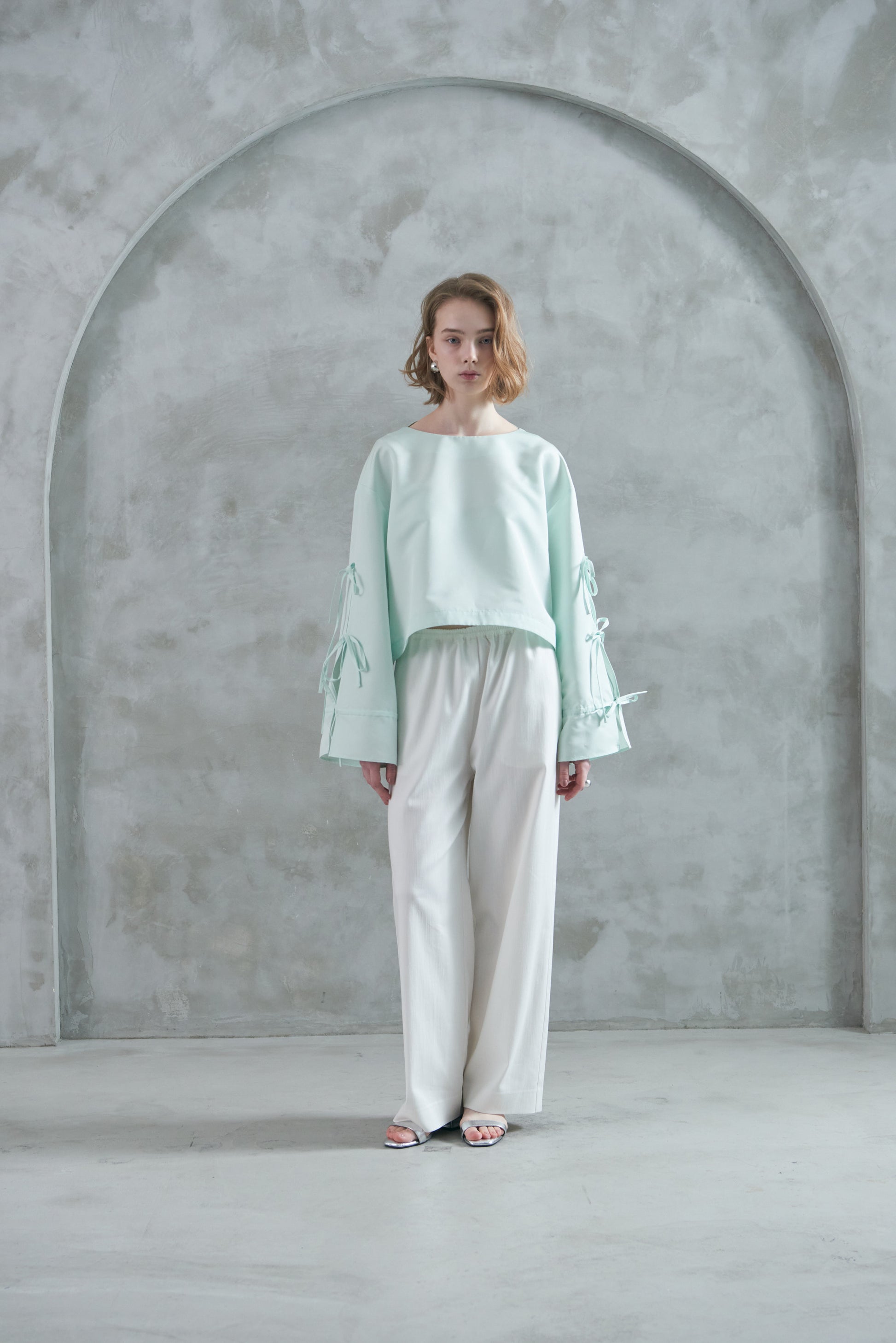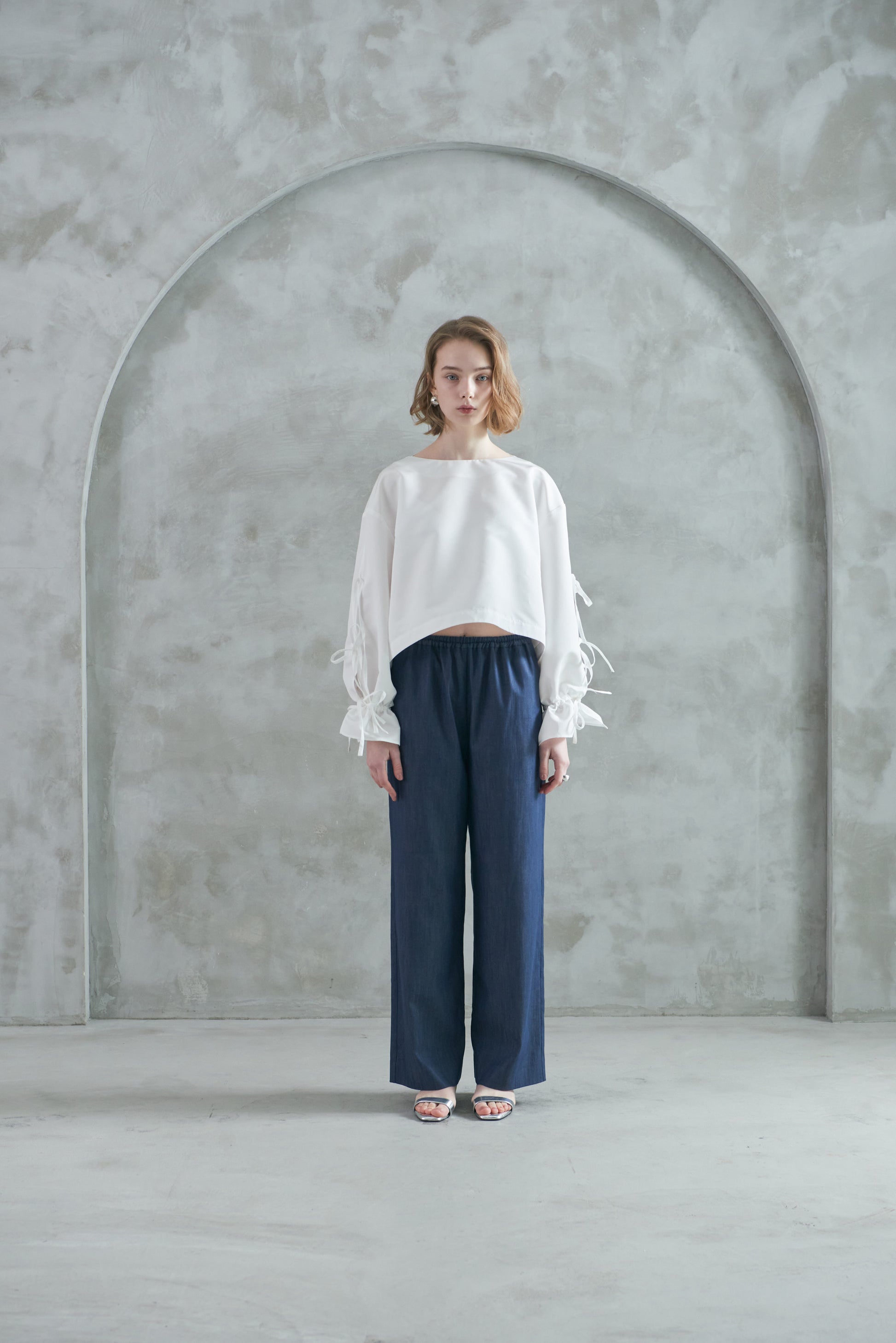 なめらかで上品な風合いに、ほどよいハリ感を加えることで、カジュアルになりすぎず大人っぽく着ていただける一本に仕上げました。