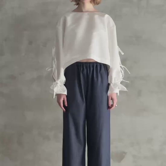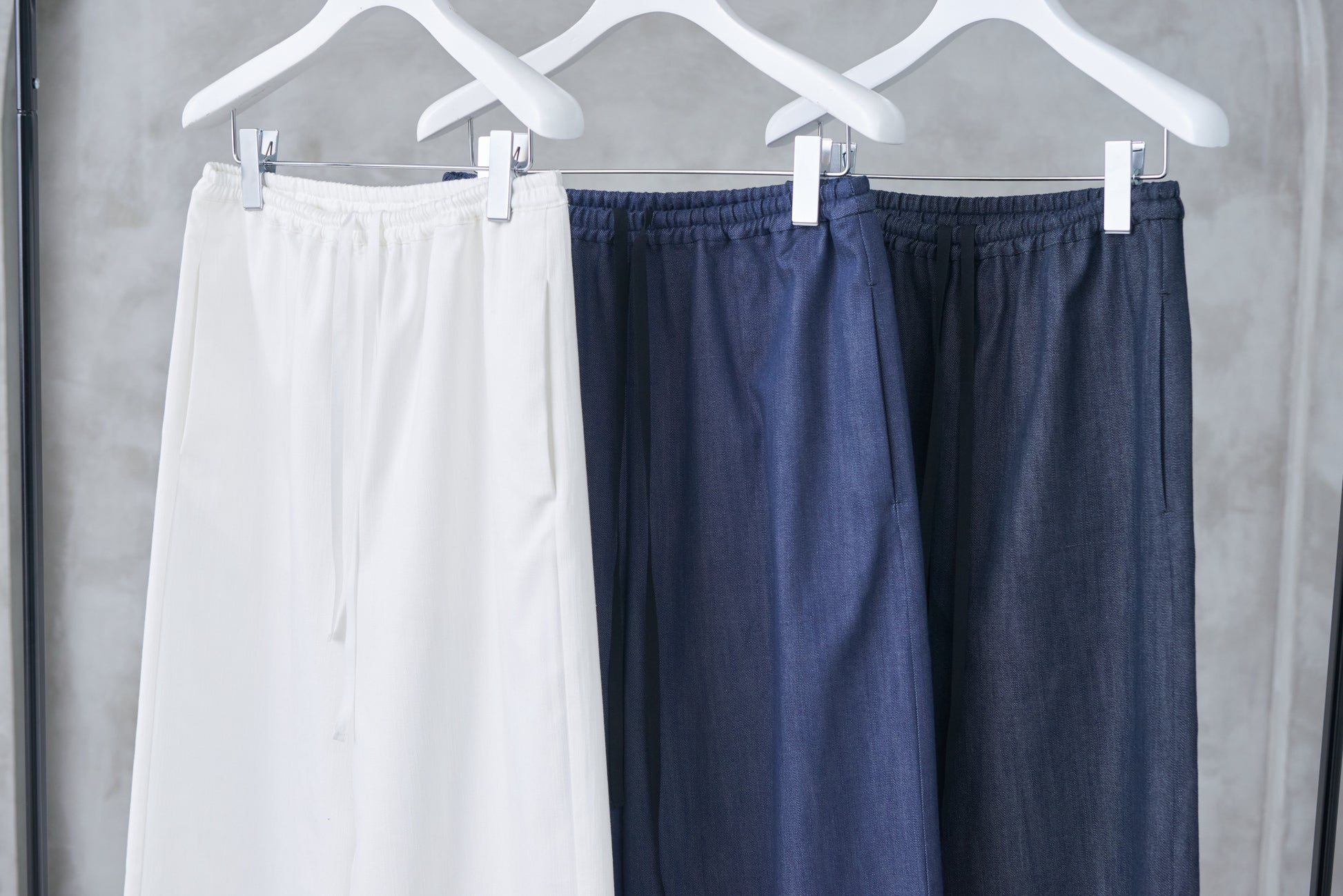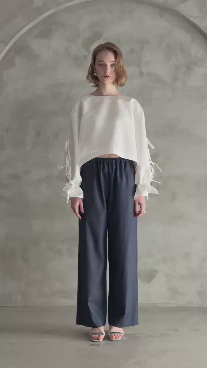 環境にも配慮したやさしい素材を使用した、軽やかなデニムのイージーパンツ。