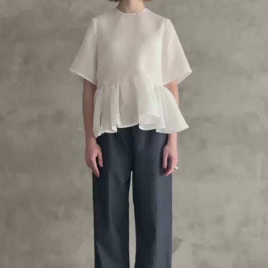 空気を含んだような軽さと、シルエットを美しく保つ適度なハリ感を兼ね備え、軽やかな着心地ながらもペプラムの立体的なフォルムがきれいに出るのが特徴です。