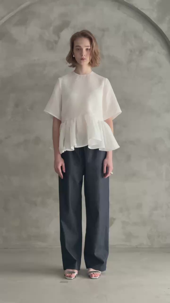 ほどよく広がるペプラムシルエットが、気になるお腹まわりを自然にカバーし、身体のラインを拾いにくいのも嬉しいポイント。